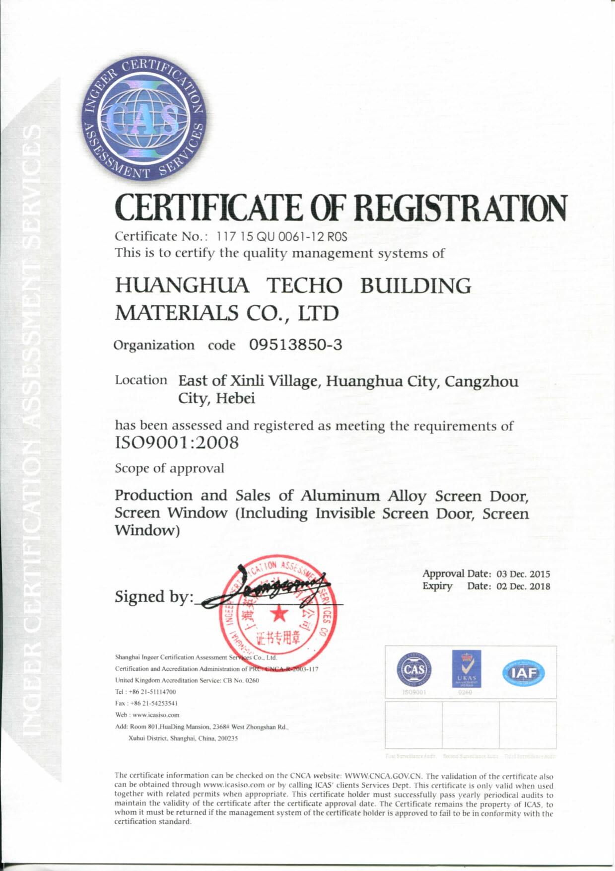 Huanghua Techo Building Material Co., Ltd. is a professional manufacturer for full range of Insect Screen system, plastic injection for garden and household products. We are located in Cangzhou city Hebei Province China, with convenient 1.5 hours container transportation to Tianjin International Seaport, 1 hour fast train to Beijing.
