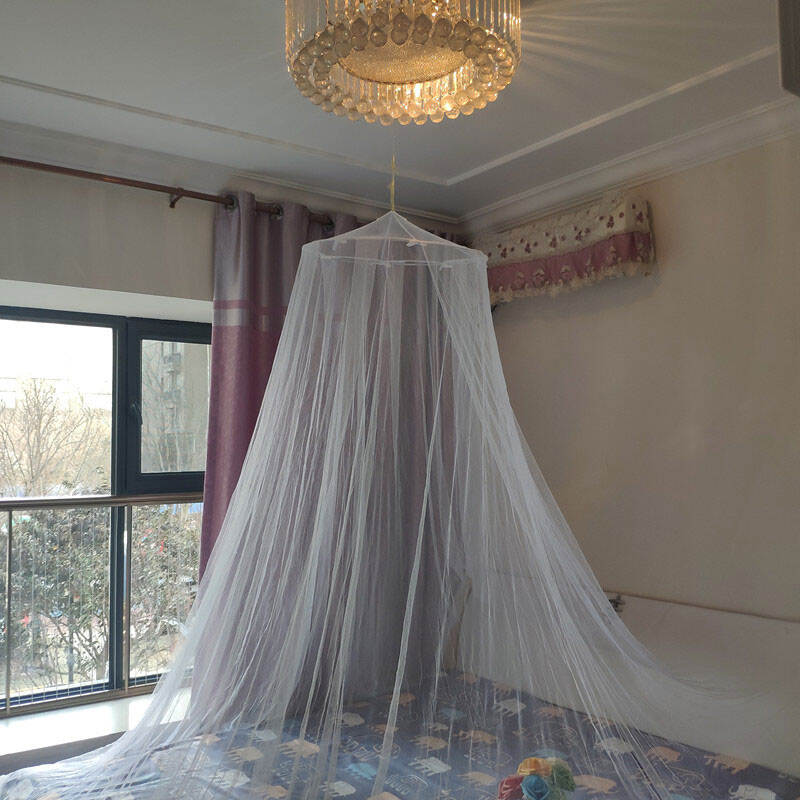 This princess style double bed hanging mosquito net features a romantic appearance and practical protection as its core, adding a warm atmosphere to the bedroom. Adopting a suspended design, the top circle has a circumference of 250cm, and when unfolded, the lower circumference size reaches 1250cm, which is precisely suitable for a double bed. The hanging design is full of sagging feeling, and the lace and layered curtains outline the princess style contour, instantly enhancing the bedroom decoration style and meeting the needs of girlish hearts and home aesthetics.