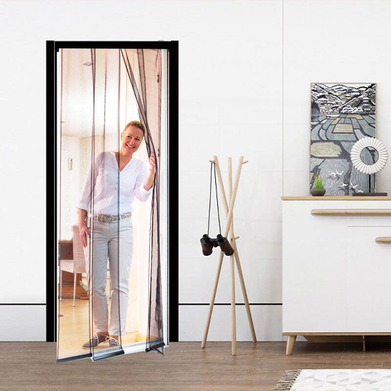 The mesh is made of high elasticity polyester material and adopts dense weaving technology, which has a high mosquito and insect barrier rate. Even small moths and midges cannot penetrate; At the same time, maintain high air permeability, ensure ventilation without stuffiness, and use in summer without affecting indoor coolness. The surface of the mesh is smooth and dust-free. For daily cleaning, simply wipe it with a damp cloth dipped in water. Oil stains and dust can be removed immediately without the need for disassembly and cleaning. The elderly and children can easily open and close the door, making it suitable for scenarios such as living rooms, bedrooms, kitchen doors, commercial entrances and exits, garage passages, etc. When not in use during seasonal changes, it can be folded and stored without occupying storage space, making it a practical choice for multi scene mosquito prevention.